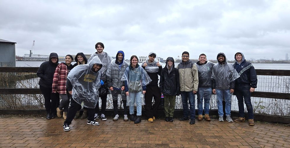 Despite the rain, our tree planting event at Camden’s Liney Ditch Park was a great success! About 25 Rowan students joined community members in this hands-on service learning project. Co-organized by the NJ Tree Foundation, Inc. and the Rowan University Planning Studio, with support from an EPA Environmental Education grant and the Dept. of Geography, Planning, and Sustainability, we planted 17 trees and collected over a dozen bags of trash. This semester, our studio is focusing on air pollution and urban greening in Camden, and studio members are proud to contribute to a healthier, greener city. A special thanks to Vin Palmieri for serving as a vital liaison between the studio and NJTF!